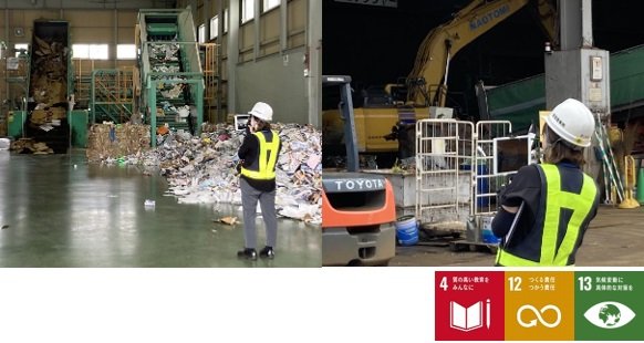 当日は工場内を生中継でリポートするリモート工場見学を行いました。生徒の皆さんは真剣に中継をご覧になり、時間の許す限りたくさんの質問をしてくれました。その結果、分別の重要性を再確認し、さらにリサイクルに対する関心を深めていただけたようです。