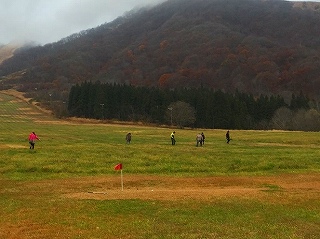 直富生物探検隊の次は、女子の中に混ざって参加してくれた「スイーツ男子」による、スキー場に向かってナイスショット♪の披露!!