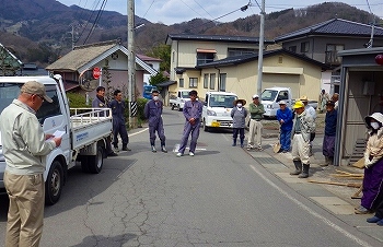 道普請というのは、地区のみんなで協力して行う共同作業の一つで、道路や農業用水路の点検、清掃を行う春先の恒例行事です。